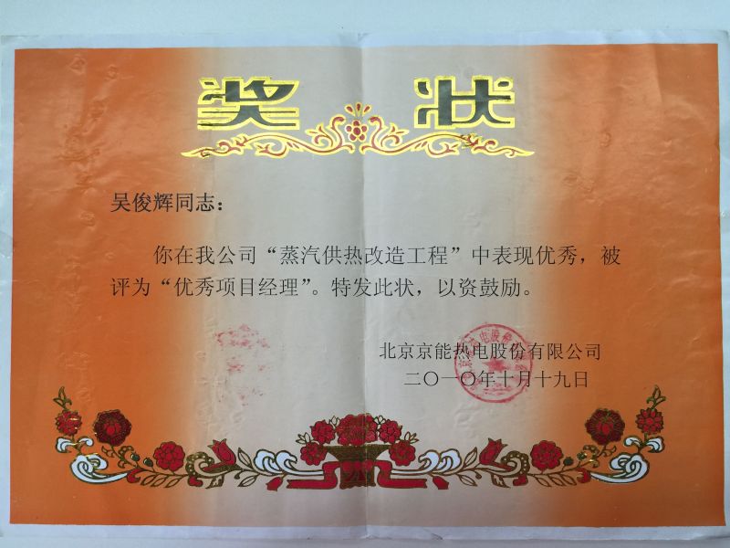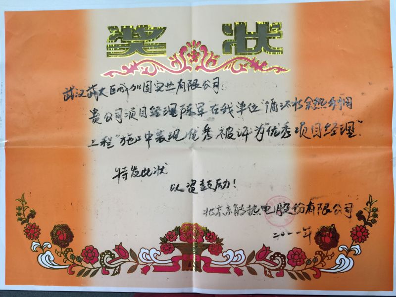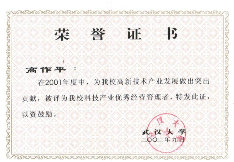 2015年东湖高新区管委会“3551光谷人才计划荣誉证书”