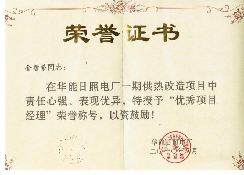 2012年四川煤气化有限责任公司“HSE表彰书”