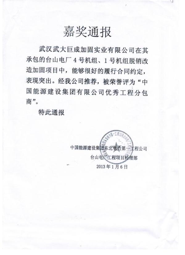 2024年青海油田格尔木冷却塔加固项目 表扬信