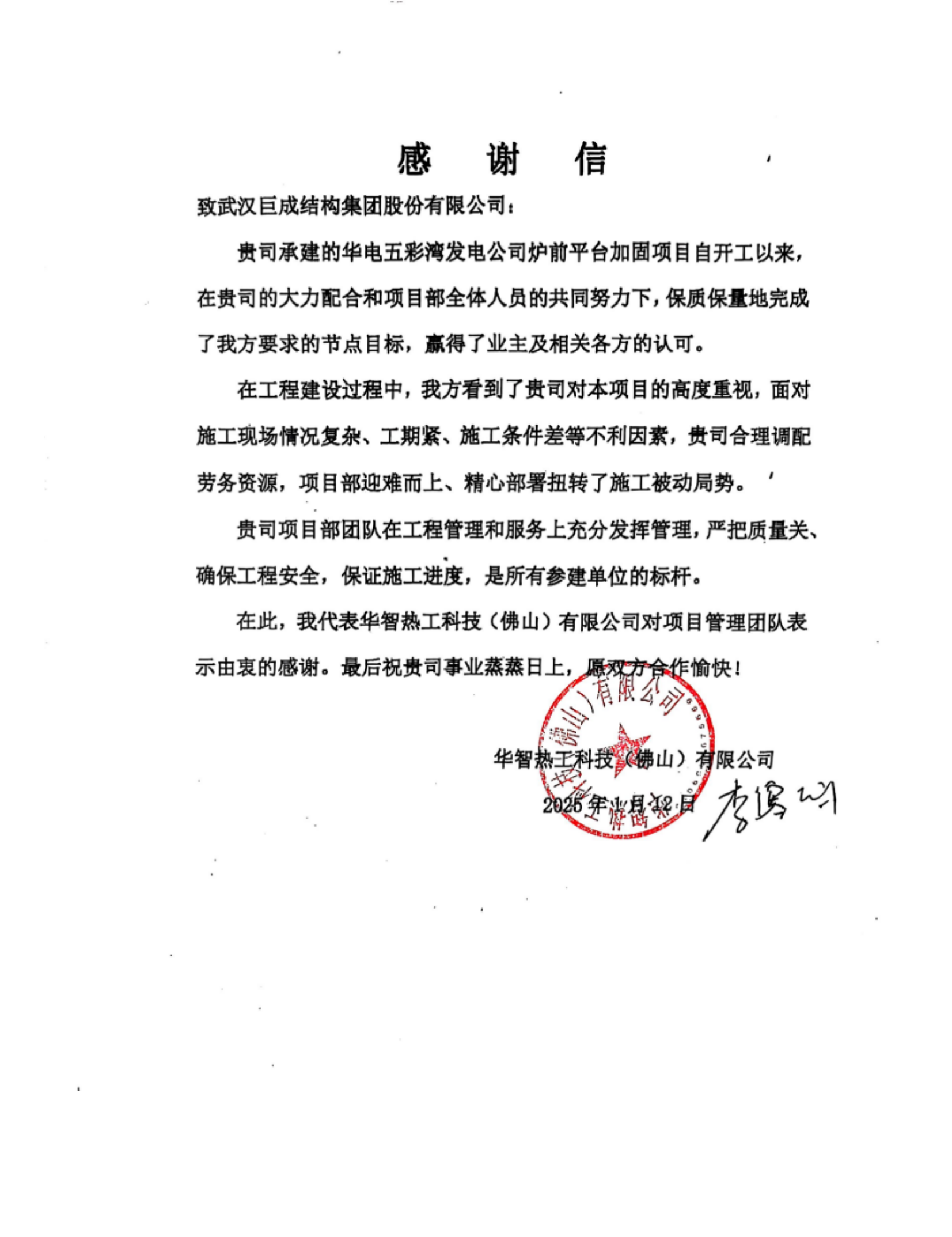 2025年葛洲坝荆门水泥有限公司 表扬信