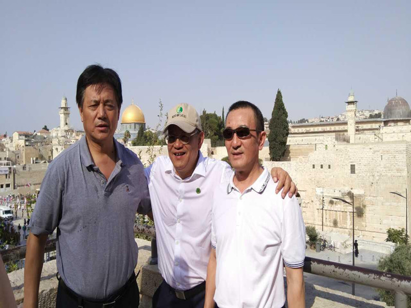 董事长高作平(左)在耶路撒冷与武大校董、校友企业家理事会副理事长艾路明(中),武大校董、校友企业家理事楚天舒合影(右)