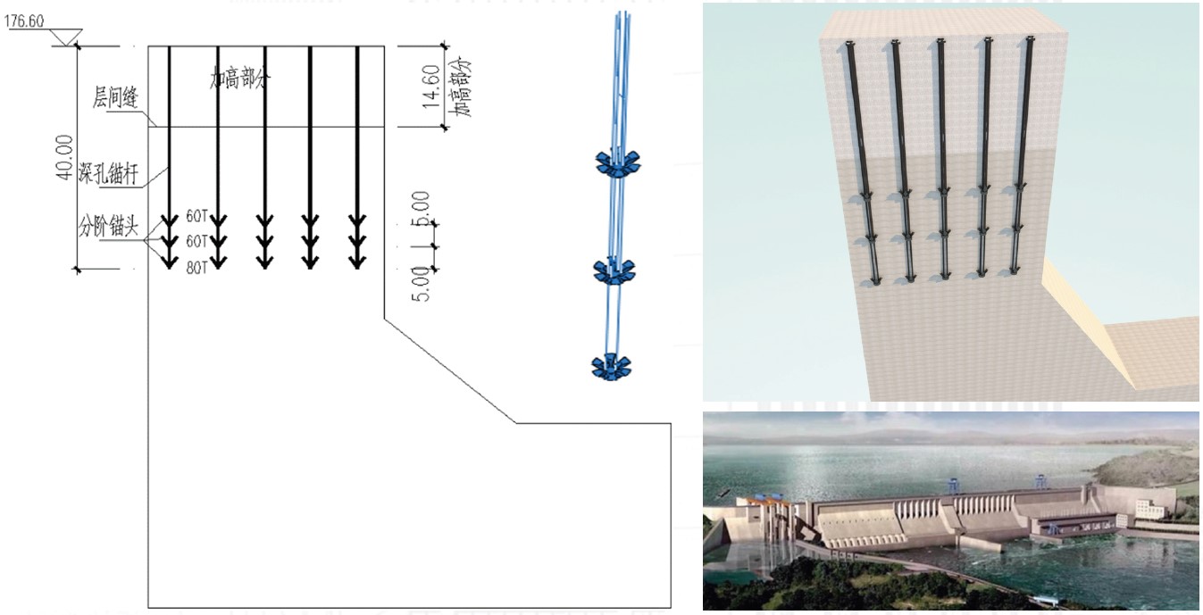 图6 丹江口大坝加高加固多层预应力自锁锚固工程