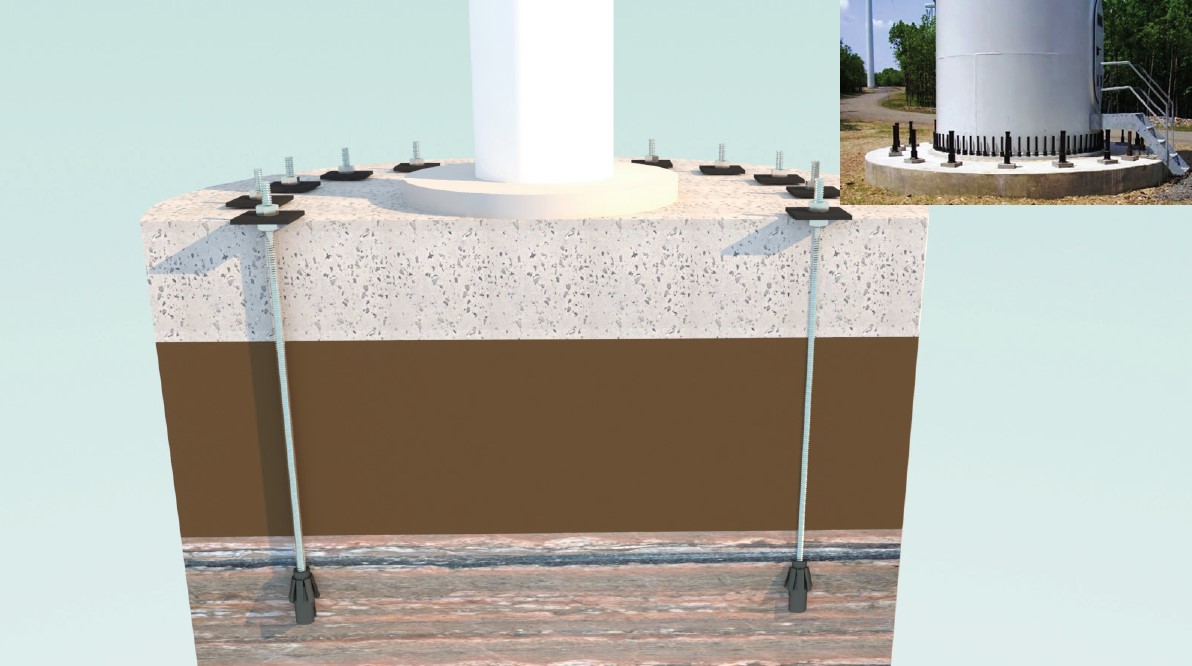 3、风机基础锚固:采用预应力自锁锚杆,风机基础结构得到优化,降低施工成本。