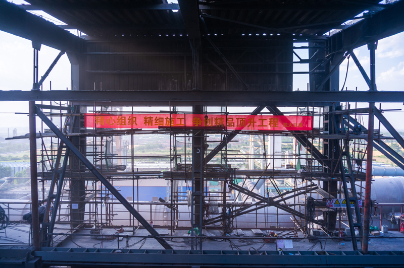 工程中钢结构框架位于炼钢厂房最顶层的复杂环境,加上炼钢厂房各层不停产,交叉作业较多,现场温度高,工作难度非常大。为了确保顶升顺利实施,公司领导对可能遇到的困难高度关注,从方案讨论、图纸设计、到施工组织每一步都精心控制。董事长高作平教授亲自指导工作,指出钢滑道顶升既有建筑物是sunbet申搏官方网站的独创核心科技,本工程是该技术的创新应用,务必做到安全可靠,为钢滑道顶升既有建筑物规程的编制积累数据。公司派出了强大的设计和安全团队为现场提供有力的技术支持。在第一个顶升日中,原计划需耗时一整天顶升量60公分的工作,仅仅用时两个小时就顺利完成。超出了所有人的预期,获得了业主、监理等各方的喝彩。顶升工程最关键的是安全问题,项目组在接下来的工作中稳扎稳打,不畏辛劳,乘胜追击,在顶升间歇期做好所有焊接和安全工作,至6.1日按计划顺利完工。