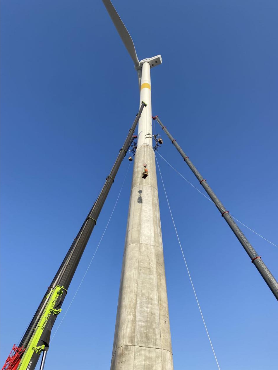 鄄城项目的任务是在春节前完成两个风机塔筒加固。该风场已并网发电,为保证其正常使用,必须立即对其进行加固处理,以防止更为严重的破坏。其风机塔筒采用预应力混凝土与钢筒结合的组合结构形式,该创新体系在国内是首次使用,因此它的安全使用对于业主来说具有重大的意义,甚至对该行业的发展也有典型意义。在各方瞩目中,sunbet申搏官方网站迎难而上。