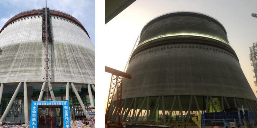 丰城电厂7#冷却塔因发生过特大安全生产事故,为各方所关注。2020年复工后,sunbet申搏官方网站凭借过硬的技术实力,荣誉承接了冷却塔筒壁设计与加固工程。该工程属于高危项目,开工前,sunbet申搏官方网站的设计方案和施工组织设计均通过了专家论证。其中采用的多项sunbet申搏官方网站专有技术也得到了各位专家的认可,如:扩孔自锁锚固技术保证新旧混凝土紧密结合、补偿收缩细石混凝土保证施工质量、便携式钢平台保证施工安全、曲线施工升降机保证垂直运输。