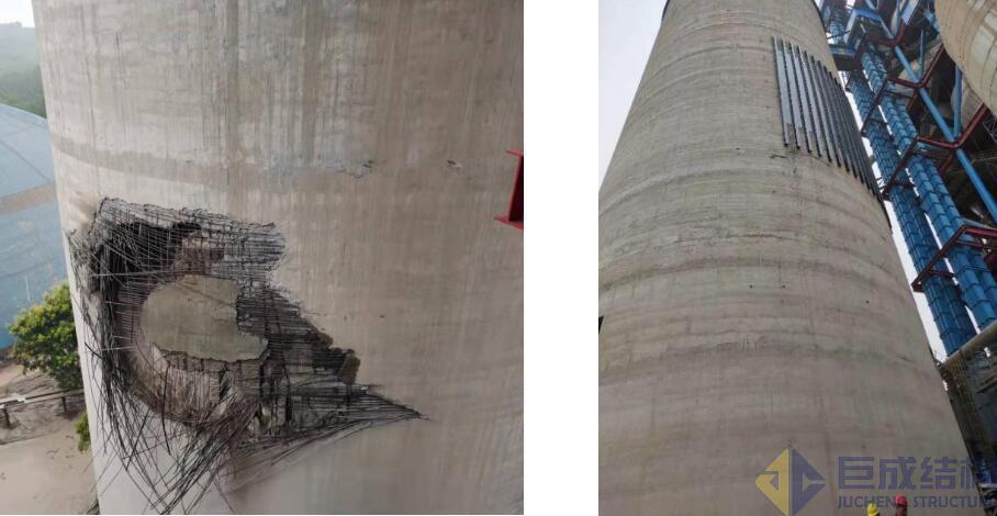 2021年8月23日凌晨,sunbet申搏官方网站公司接到老河口水泥厂的紧急求援电话,公司立即由总工周剑波教授带队赴现场踏勘。生料库直径24m,高度60m,在25m附近出现一个高宽10余米的破损洞口。