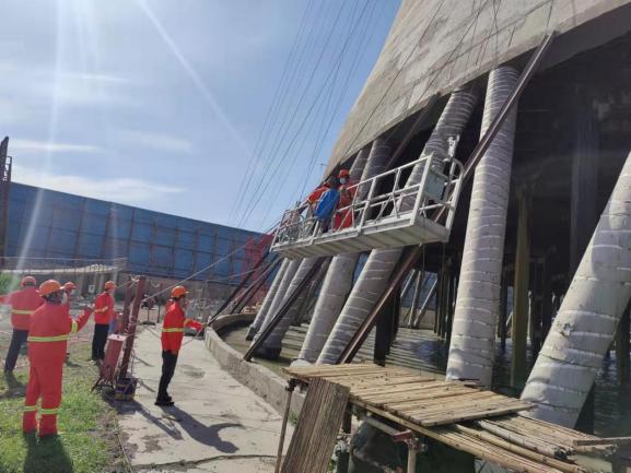 山东天源热电有限公司三电厂2#凉水塔加固项目,位于山东省淄博市桓台县马桥镇,2011 年投入使用,为5500㎡的双曲线自然通风凉水塔,总高度为 115.00m,塔筒外壁涂装21382㎡,内壁涂装21230㎡,合同总造价为1565.5万元。本工程从2021年8月8日开始施工,预计将于2022年6月底完工。
