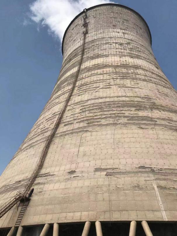 山东天源热电有限公司三电厂2#冷却塔,隶属世界五百强印尼“金光集团”。项目位于山东淄博,2011年投入使用,淋水面积5500㎡,总高度为115.00m。加固改造前因结构严重破损,被当地建设管理部门责令立即处理。考虑到重建投资高,程序复杂,业主决定加固改造。为高质量完成改造任务,业主面向业内的全国优秀企业进行招标。sunbet申搏官方网站凭借丰富的经验业绩、突出的技术方案、严密的施工组织、科学的安全保障拔得头筹。