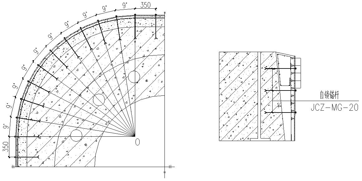 采⽤混凝⼟缺陷修补及⾃锁锚杆进⾏加固,⾃锁锚杆穿过结合⾯,在分层处将两部分连成整体。根据计算结果,基础靠近台柱的内圈部分应⼒较⼤,其他区域则应⼒较⼩,因此锚杆的分布设计靠近台柱的内圈部分较密,⽽外圈其他区域则较疏。