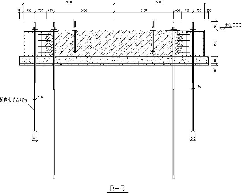 结合专家意⻅及相关技术资料并根据现场实际情况,对⻛机基础进⾏加固处理。⾸先对原⻛机基础采取加⼤截⾯法进⾏加固,然后在基础扩⼤区域增加18根岩⽯预应⼒锚索进⾏加固。预应⼒锚索底部采⽤扩孔⾃锁锚固技术。