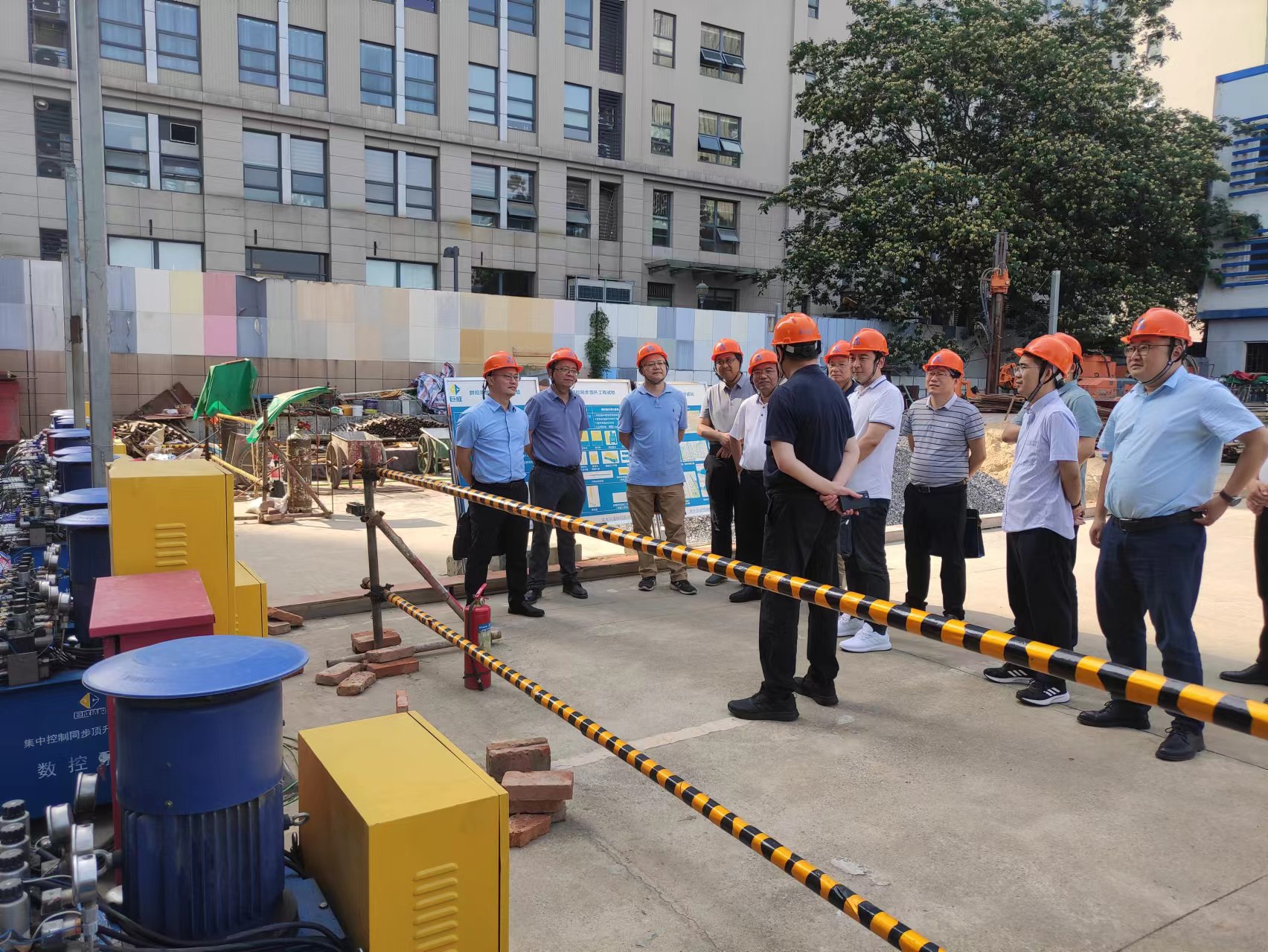 陈总一行首先考察了sunbet申搏官方网站群控同步顶升工程试验项目现场,副总经理张畅介绍了顶升试验的背景、目的和群控同步顶升大型数控设备以及顶升应用前景。双方对钢滑道顶升技术和应用场景展开了深入的讨论和交流,大家一致认为sunbet申搏官方网站群控同步顶升技术能够在城市更新、老旧小区改造以及桥梁顶升等领域发挥重大作用。