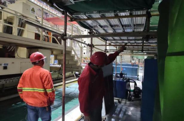 重点检查脚手架平台的搭设情况、脚手板的绑扎情况、上下层行车走道的生命绳状态、顶部行车平台的生命绳以及钢构施工平台的焊接情况。确保脚手架作业平台的安全、各处生命绳的状态完好,并监控作业人员施工时系挂安全带的行为。