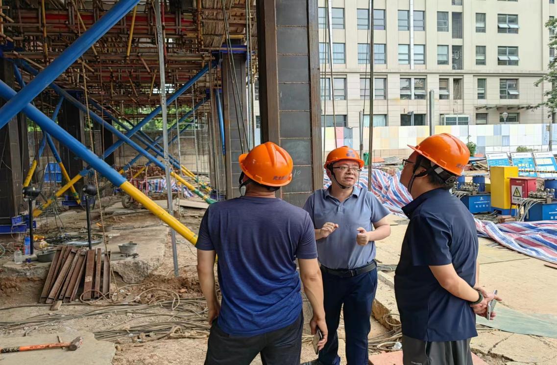 陈总一行考察了sunbet申搏官方网站钢滑道群控同步顶升工程试验项目现场,sunbet申搏官方网站副总经理张畅介绍了顶升试验的具体情况及未来憧憬。并对现场群控同步顶升大型数控设备以及顶升原理做了详细的介绍。双方对钢滑道顶升技术应用场景展开了热烈讨论,并对试验过程中的相关技术要点、施工流程进行了深入交流。
