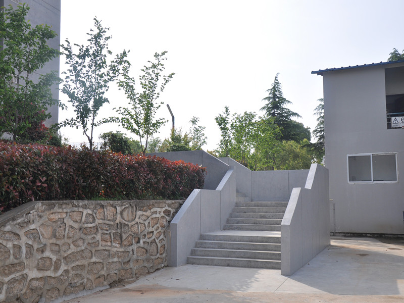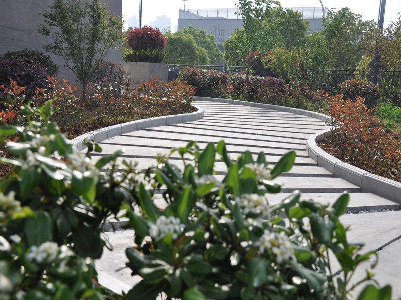 本次景观小径的设计师方俊介绍道,景观小路的设计主要遵循了和谐原则和韵律原则。首先,因公司园内属于厂房规划,整体格调为整齐、规正。在选择步道形态时,采用富有趣味性的曲线,并在分割缝中填上白色圆石,让行人在踏步的过程中感受到整体板块所不能赋予的韵律感。其次,因步道为内部员工就餐回园区的主要路线,会三五成群返回工作区域,设计宽度为2.5米,可供5人并行。最后,为了使步道能够与sunbet申搏官方网站大厦融为一体,因而选用了和大楼同一色系的清水混凝土涂装。